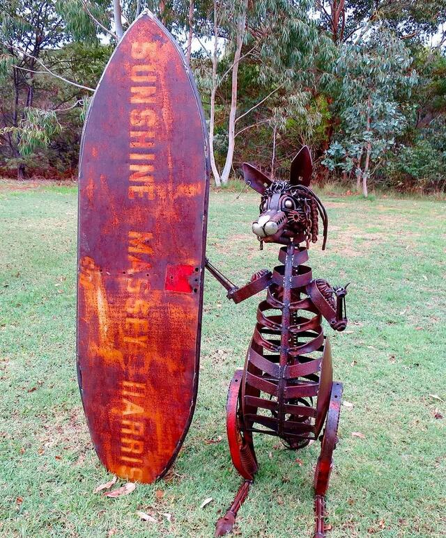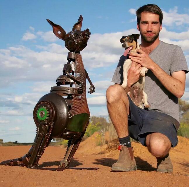 他在舊機器和廢金屬垃圾堆中扒出了可用的再生金屬,創作了這些雕塑作品。