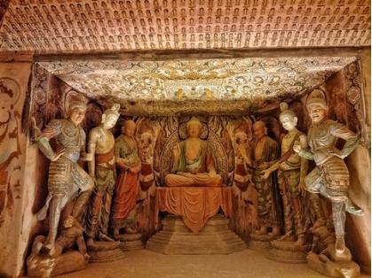 敦煌莫高窟,是古建筑、壁畫、雕塑三者結(jié)合為一體的藝術(shù)寶庫,除驚艷豐富的壁畫外,敦煌的雕塑也久享盛名。有十幾米高的大型佛像,也有幾十厘米高的菩薩像。絕大部分洞窟都保存有塑像,數(shù)量眾多,堪稱是一座大型雕塑館。
