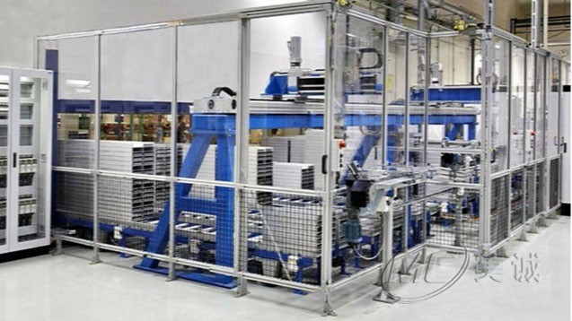 機(jī)械設(shè)備護(hù)欄是在生產(chǎn)流水線外設(shè)立防護(hù)措施,局部或全部建立鋁型材防護(hù)圍欄,以保證人員和設(shè)備安全,部分區(qū)域會(huì)安裝門或留出通道便于貨物進(jìn)出和人員檢修。